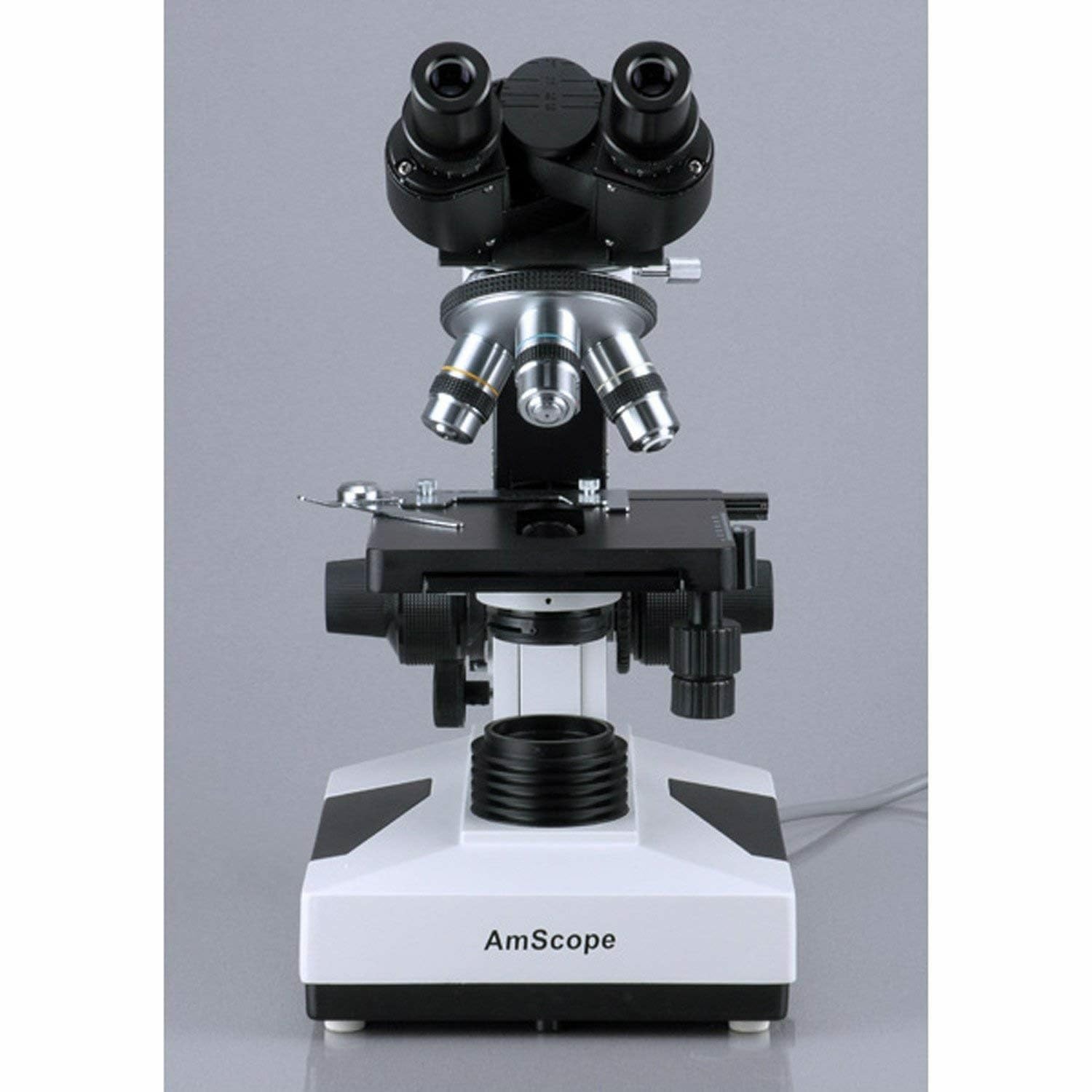 AmScope - 1600X Biological Compound Binocular Microscope + 50 Slides + 100 Coverslips - B490A-50P100S